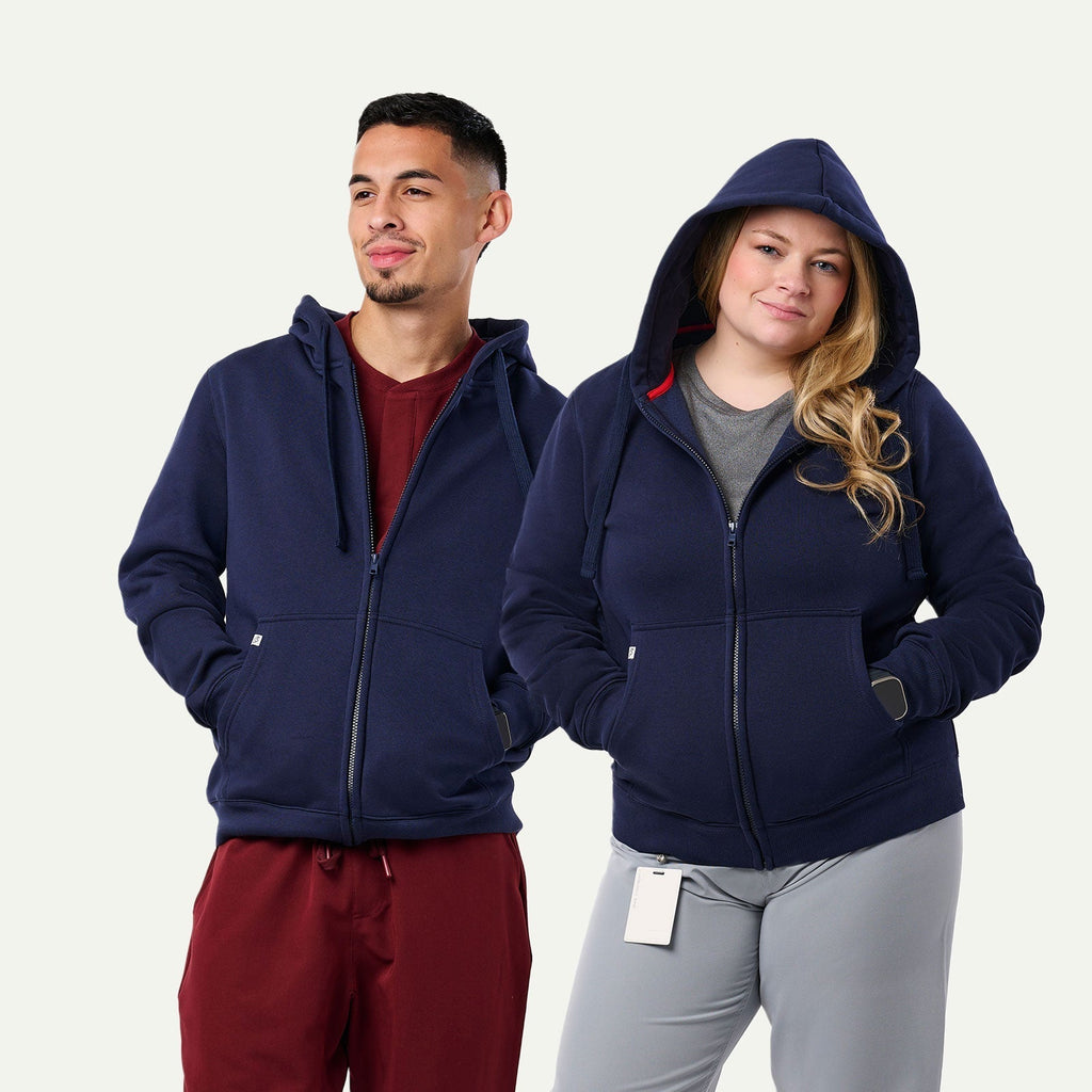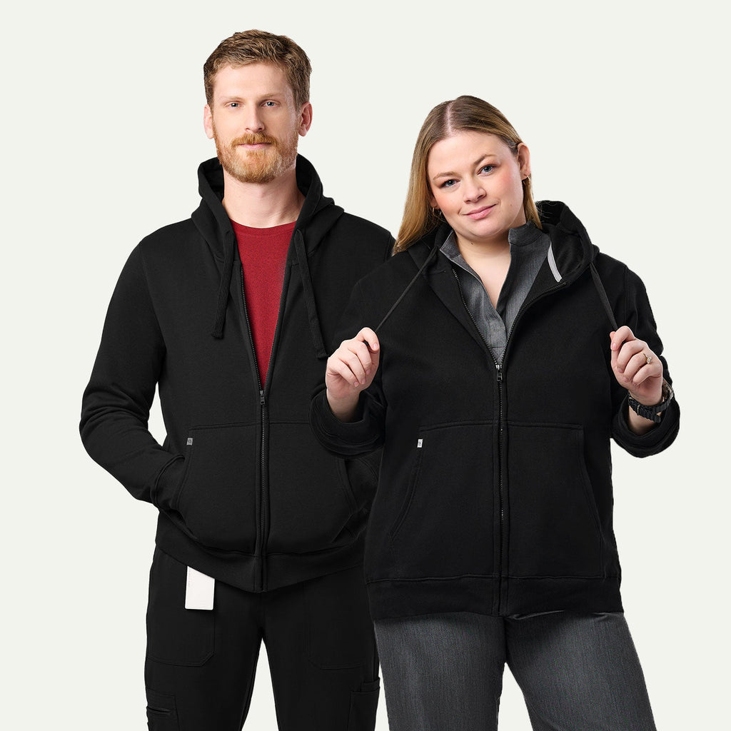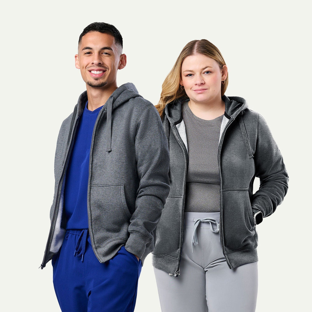 Enjoy a roomy yet refined design that keeps you warm from head to wrist, shielding you from chilly winds without feeling bulky or baggy. The Noah Unisex Fleece Hoodie from Peelz™ Scrubs is perfect for anyone seeking comfort and style that seamlessly transitions from work to relaxation. Noah features two roomy pockets, a drawstring hood, and a breathable 4-way stretch fleece to keep you warm without being overheated.